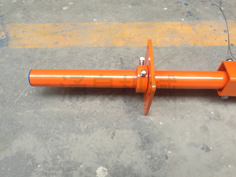 5. 安裝固定,使組裝好的清掃器軸心線與滾筒軸心線平行,刀頭緊貼帶面,然后調整使刀尖線的中心對準滾筒軸心線的中心,將橫梁底部的鎖緊螺釘擰緊并用螺母鎖定。通過調節螺母調整彈簧長度,給刀頭施加預緊力,然后用鎖緊螺母鎖緊。
